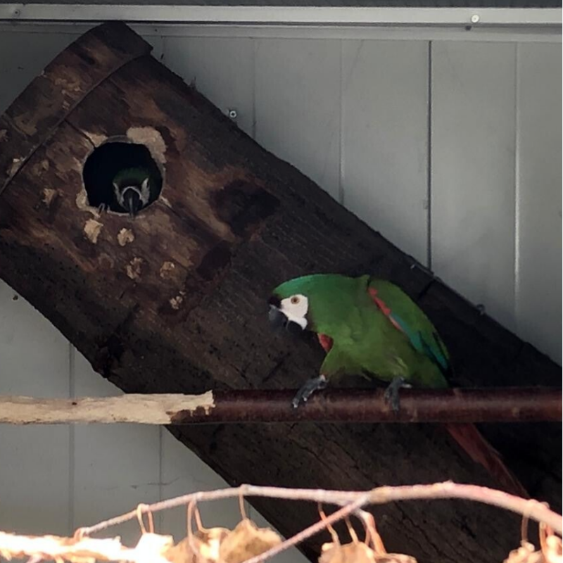 In 2021 voegde ik een koppel Ara severa toe aan het vogelbestand. Deze werden in een buitenverblijf gezet van circa 4,00 x 1,30 x 2,20 m. De vogels kregen de keuze tussen een rechtopstaand natuurhouten broedblok en eenzelfde broedblok maar dan in een hoek van 45 graden geplaatst.