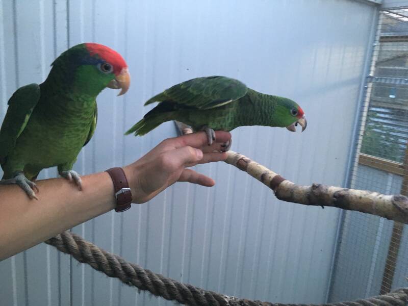 In 2016, toen ik net een jaar in Leende woonde zag ik op een Belgische site voor tweedehands spullen een koppel groenwangamazones aangeboden worden. De verkoper moest door een scheiding verhuizen en moest om deze reden de vogels verkopen. Het was een onverwant koppel waarvan de man redelijk tam was. De pop was van 2014, de man van 2012. Vanwege de tamheid van de man had ik mijn bedenkingen maar ik besloot het erop te wagen.